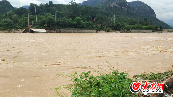 20日上午,大眾網記者趕赴青州市王墳鎮西股村現場途中,路過青州市王墳鎮大峪口村村口,發現這里依然水勢洶涌