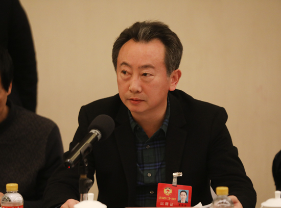 省政協委員、山東出版集團有限公司董事長張志華在參加小組討論時發言。