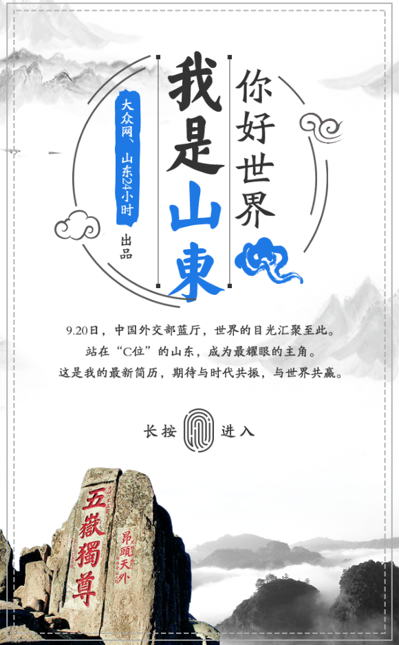 山東,歷史厚重。是中華文明重要發祥地,四五十萬年前就有人類生存和繁衍,2700多年前孕育的齊魯文化,是中華優秀傳統文化的重要源頭。在革命斗爭中鑄就的軍民水乳交融、生死與共的沂蒙精神,是中華民族精神的現代升華。山東,人文薈萃。誕生了孔子、孫子等一大批杰出的思想家、軍事家、科學家、政治家、醫學家、文學家和藝術家。孔子創立的儒家思想,倡導“天下為公”“協和萬邦”,至今深刻影響著世界。山東,崇尚變革。創新求變的基因,深深扎根齊魯大地。山東人敢闖敢試、敢領風氣之先,農業產業化和國有企業等改革,在全國率先突破。山東,活力迸發。敢于破除制度體制障礙,勇當新時代泰山“挑山工”,社會創造激情澎湃,擁有市場主體860多萬個,海爾冰箱、濰柴發動機、浪潮服務器等品牌享譽全球。山東,開放包容。山東人具有海納百川、兼容并蓄的特質。如今,走出去堅定自信,引進來力度空前,融入世界的胸懷更加寬廣、腳步愈加豪邁。山東,機遇無限。人口超過1億,市場潛力巨大。我們正在實施新舊動能轉換重大工程、打造鄉村振興齊魯樣板、加快建設海洋強省,高質量發展全面起勢,發展機遇無限,前景十分廣闊!