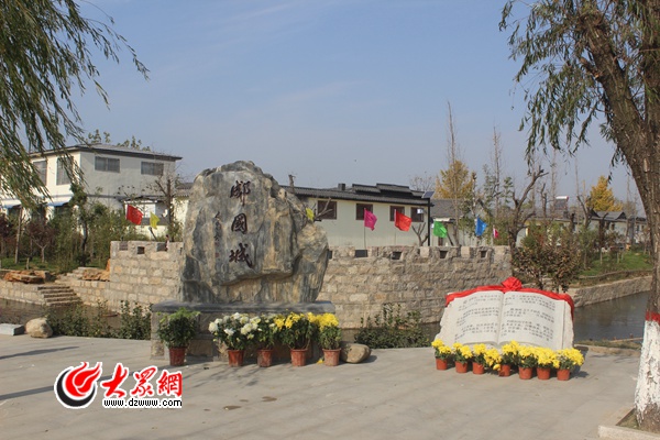 現如今,這里修建了仿古街、景觀橋,修復了護城河,打造了觀景臺、三樂島、對花井廣場等景觀節點,并建設了“郕國城歷史博物館”。遠遠望去,清一色的灰色瓦當,特有的黃色漆墻之上描繪著郕國景象,整個村子都顯得古色古香。走在古城村的鄉間小路上,可以感受到一派鄉村田園中才有的鳥語花香。再細細看上兩眼,更會被村外小河流水,村內柳樹成蔭的鄉村田園氣息所深深吸引。