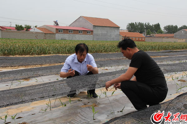 合作社黨員查看示范田中大姜長勢