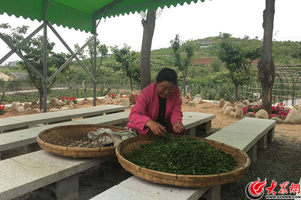 與往常一樣,村民孔令芝把上午剛采的3斤多綠茶帶到茶葉合作社售賣!白詮募尤肓撕献魃,我就不用再到處找炒茶的小作坊賣了,合作社統(tǒng)一定期收茶,不僅省心,收的價(jià)格還比外面高一些!笨琢钪ジ嬖V記者,今年夏茶收購價(jià)為32元一斤,一年種茶收入就能達(dá)到3萬元-4萬元。