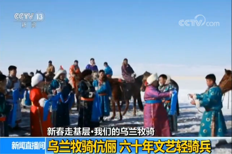 在內蒙赤峰的巴彥查干蘇木,牧民穿上了新年盛裝迎接克什克騰旗烏蘭牧騎的到來,以藍天為幕布,雪地做舞臺,進行了一場辭舊歲,迎新年的聯歡。