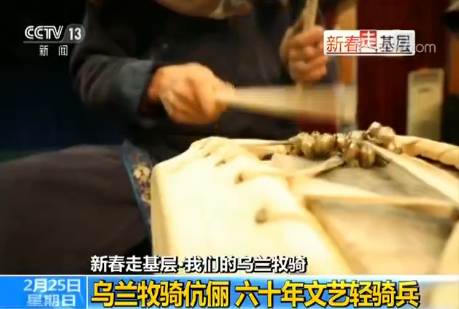 這些年輕的烏蘭牧騎隊員們傳承著當年老一輩“紅色文藝輕騎兵”的傳統,送文化、講政策,“哪里有群眾,就到哪里演”。84歲的烏國政老人是最早的一批烏蘭牧騎隊員,見證了1957年烏蘭牧騎的成立。他告訴我們一生中最美好、最值得回憶的時光都是在烏蘭牧騎度過的,在這里他學會了舞蹈、樂器、編曲,與農牧民同吃同住,結下深厚的友誼,講到動情處,老人還拿起四胡唱起了當年自己創作的歌《我們的烏蘭牧騎》。