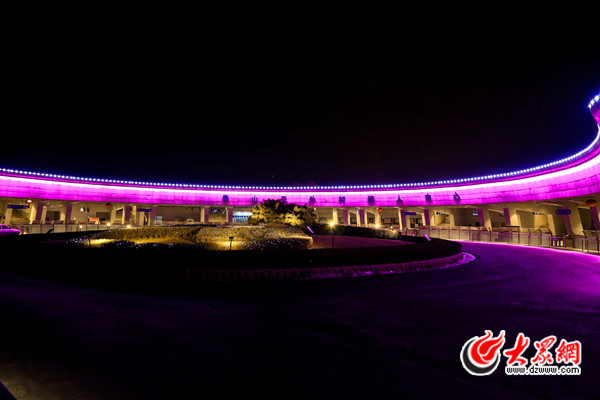 泰山環山路是連接泰安東西的重要道路,它像一根漂亮的項鏈,將桃花峪、天外村、紅門、天燭峰四大景區整個連為一體,是泰山的保護線、重要的旅游線,也是一條向世界展示泰安形象的名片式景觀大道。現在整個環山路兩旁都亮起了五顏六色的燈,絢麗奪目。