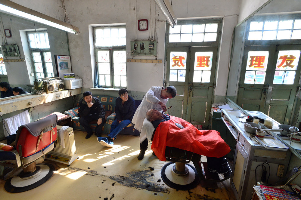 65歲的龔元洪,是這家老店如今唯一的員工。龔師傅20歲學徒,最后被分配到這里工作,一干就是40多個年頭。 “這兒以前是個露天市場,那時這里人氣最旺。當時店里有5位理發師,卻總是忙不過來。之后市場退路進室,加之私營美發店的出現。店里的生意每況愈下,如今便只剩下我一人!饼弾煾嫡f,雖然早在4年前他就已經退休,但還是被返聘回來繼續看店。