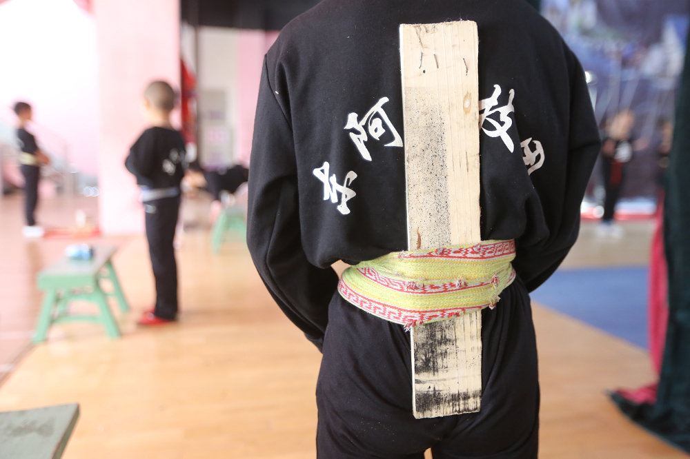 曲大是這些孩子中最小的一個,只有7歲,他是和10歲姐姐作曲一起,在幾個月前來到雜技團的。這些彝族孩子中,有好幾個是姐弟、姐妹一起出來的。最大的20歲的爾古,和10歲的弟弟可布一起來到東阿。因為家里孩子多,生活困難,爾古從小沒有上過學,而弟弟也只上到小學二年級。