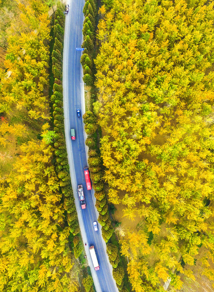 11月7日,本報記者用無人機航拍下了滿城盡是“黃金甲”的壯美。(齊魯晚報 劉軍 攝)