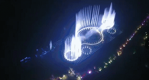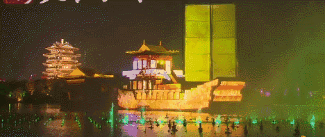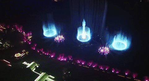 序曲“蝴蝶戲泉”,中間的噴泉伴隨著燈光左右搖曳,有蝴蝶紛飛的輕盈感,又像是水面上的花朵隨風擺動。
