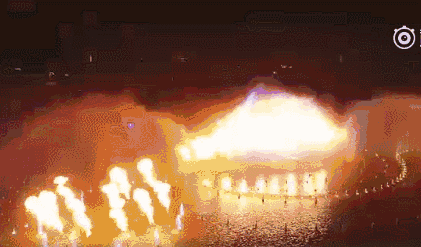 在隨后的第一幕“黃河育舜帝、雙撒珍珠泉”中,水幕上出現(xiàn)了火焰燃燒的景象,水幕前也噴出道道火焰,突然而來的熱量,讓觀眾第一次發(fā)出了一片“哇”聲!皝碇爸烙袊娙袩艄,沒想到還會噴火,給人的感受更加有沖擊力了!笔忻駨埮空f。