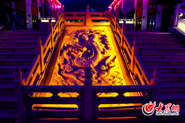 圖為泰山東街一角,雕刻的巨龍在燈光的照射下栩栩如生。