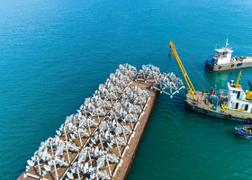 投放人工魚礁和建造海底藻場,使海洋牧場區(qū)基礎(chǔ)生...