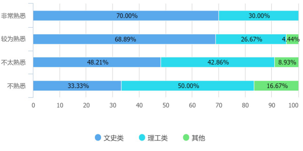 從專業(yè)來看,在關(guān)于“您對大學(xué)生權(quán)利與義務(wù)了解多少”這一問題中,知道較多的同學(xué)中文史類占到61.7%,理工類占到34.04%,其他專業(yè)占到4.26%。在關(guān)于“您對人大代表選舉流程熟悉程度如何”這一問題上,非常熟悉和較為熟悉的同學(xué)中文史類分別占到70%和68.89%,理工類和其他專業(yè)則為30.00%和31.11%。從以上兩個基本的政治參與知識中可以看出。文史類專業(yè)的同學(xué)更加具備基本的政治參與知識,而理工類和其他專業(yè)同學(xué)在這方面了解不甚清楚。可以在一定程度上印證假設(shè)1。