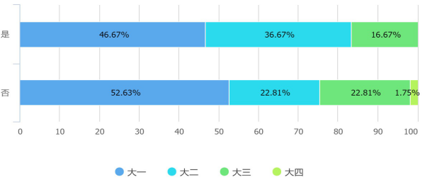本次調(diào)查問卷來自山東農(nóng)業(yè)大學(xué)117名在校學(xué)生,其中各專業(yè)和各學(xué)業(yè)階段學(xué)生均有占比。