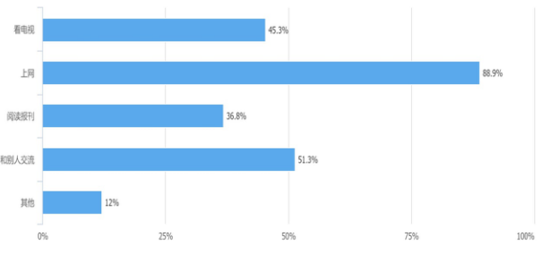 針對一些多選問題來看。在關(guān)于影響大學(xué)生政治參與的因素中,普遍認為國家的政治,經(jīng)濟,文化等多方面制度和當下的社會風(fēng)氣這兩種因素影響最大,親朋好友和學(xué)校社團組織的影響最小。在關(guān)于通過何種途徑獲取政治信息的問題中,88.9%的同學(xué)選擇上網(wǎng)。在關(guān)于阻礙大學(xué)生政治參與的因素中,68.4%的同學(xué)認為是自身政治參與素質(zhì)欠缺。假設(shè)4得到一定的驗證。