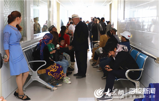 8月23日早上10時許,英吉沙縣人民醫院門診樓4樓的半層通道已經擠滿患者,看到身著印有“天涯若比鄰,魯疆一家親”字樣T恤的醫療專家們出現,等待的人群一陣騷動,沒一會,眼科門診前就聚起了長隊。