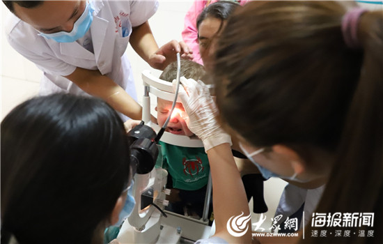 山東大學(xué)第二醫(yī)院眼科醫(yī)生王合雷對(duì)患者進(jìn)行仔細(xì)篩查。(仇晶 攝)
