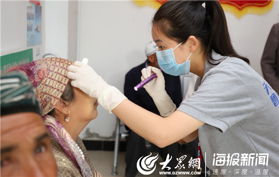山東大學(xué)第二醫(yī)院眼科醫(yī)生魏超對當(dāng)?shù)鼗颊哌M(jìn)行檢查。(仇晶 攝)