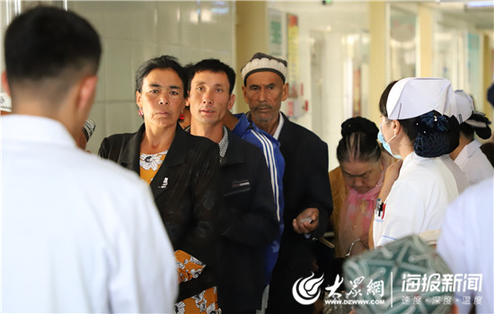 8月23日早上10時許,英吉沙縣人民醫院門診樓4樓的半層通道已經擠滿患者,看到身著印有“天涯若比鄰,魯疆一家親”字樣T恤的醫療專家們出現,等待的人群一陣騷動,沒一會,眼科門診前就聚起了長隊。