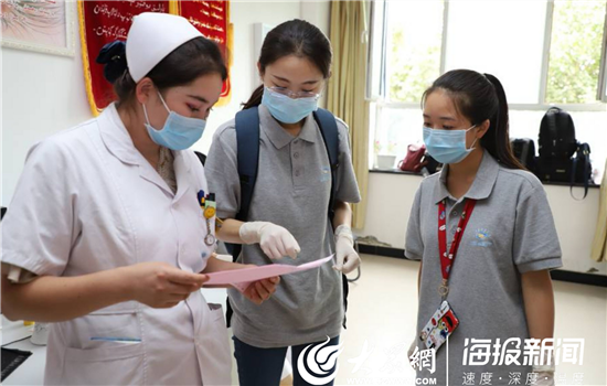 山東大學第二醫院眼科醫生張曉陽、護士朱靜潔向麥蓋提縣人民醫院醫護人員仔細核對患者信息。(仇晶 攝)