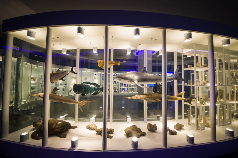 日照海洋科普館內(nèi)生物標(biāo)本展示。