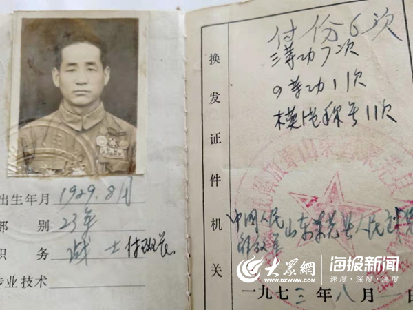 復(fù)員軍人證明書、農(nóng)村復(fù)員建設(shè)軍人登記表、參軍證明、紀(jì)念章……8月2日上午,大眾網(wǎng)·海報(bào)新聞?dòng)浾咭姷搅恕傲沂俊痹S化水的四兒子、萊蕪一中教師許然。