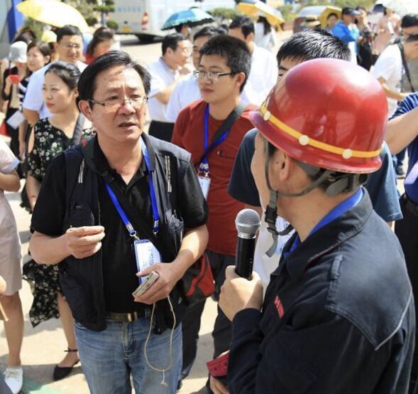 采訪團記者采訪日照鋼鐵控股集團有限公司專業工程師周洪寶。