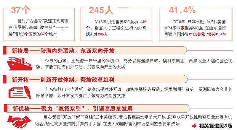 2018年6月,習(xí)近平總書記再次視察山東,要求山東主動融入國家開放大局,打造對外開放新高地。