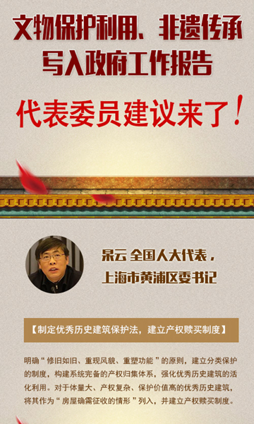 中國青年網北京3月12日電今年政府工作報告提到,加強文物保護利用和非物質文化遺產傳承。 [詳細]