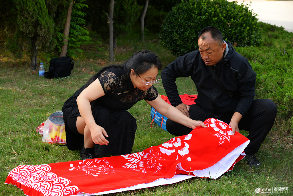 2019年6月2日,山東聊城,中國文化遺產日即將到來,茌平縣剪紙非遺傳承人之一的民間剪紙藝術家田田巧妙的將剪紙與各種服裝款式結合在一起,創作了漢服富貴花開、拖地披肩出水芙蓉、斗篷鳳戲牡丹及福壽三多等作品。