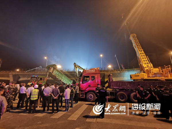 穿過警戒線,一路停滿各種救援車輛。11日凌晨,記者在橋面?zhèn)确仍F(xiàn)場看到,幾臺(tái)吊車和挖掘機(jī)正在緊張救援中。現(xiàn)場情況比較危險(xiǎn),記者在吊車下方看到上方不時(shí)有異物掉落,砸在施工車輛上,砰砰作響。