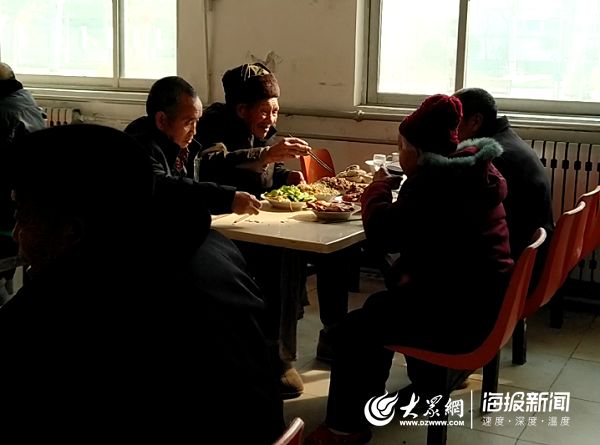 送完餐,老人們都吃完飯回到房間后,工作人員總算放下心來吃著早已放涼了的飯菜。即使是年夜飯,聊天的話題也是圍繞著這些老人,今年蒸的饅頭、包子老人們一頓能吃幾個,初一的菜譜是不是還得再改改。一邊說著過節不聊工作的院長許寧,一邊又忍不住為新一年敬老院工作做著規劃。甚至祝酒的詞語也都是對老人、對敬老院未來的美好祝愿。