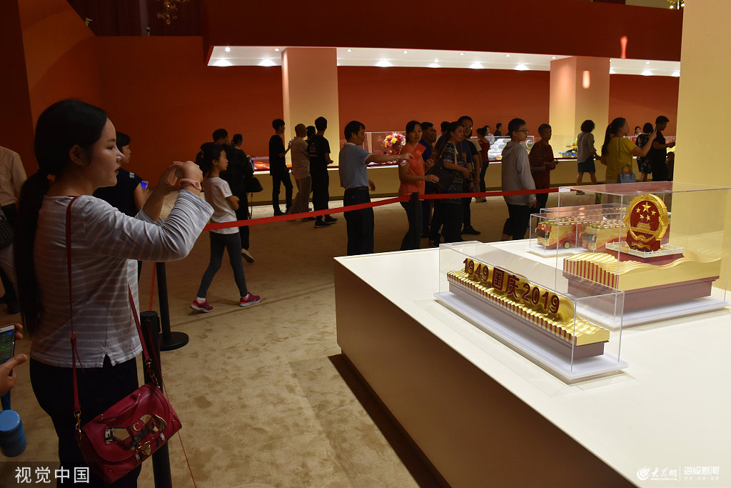 2019年10月2日,北京展覽館內(nèi)的“彩車模型展廳”正式對(duì)外開(kāi)放,國(guó)慶所有彩車的1:20等比例模型都陳列其中,為正在這里舉辦的新中國(guó)成立70周年大型成就展增添了節(jié)日氛圍,成國(guó)慶假期熱門“打卡地”。圖片作者:南山/視覺(jué)中國(guó)