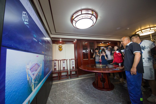 網(wǎng)箱上方建筑采用別墅設(shè)計,采用高標(biāo)準(zhǔn)“中國風(fēng)”裝修風(fēng)格。“這是我們特意定制的,更好地使旅游業(yè)和漁業(yè)真正結(jié)合,”宋守剛說,“這里還可以供游客休閑垂釣。在平臺兩側(cè)分別布置有150平方米的設(shè)備間和400平方米的生活區(qū),可讓游客親身體驗高科技養(yǎng)魚過程。”