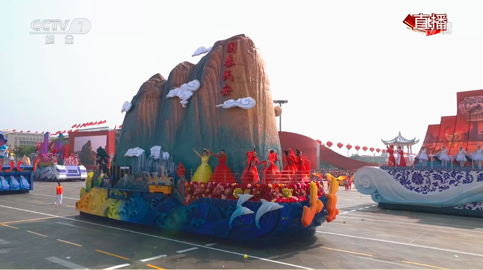 經過現場檢驗和調試,山東彩車于9月7日開始半裝演練。9月30日晚至10月1日凌晨,山東彩車進入展演區域待命,在10月1日上午群眾游行環節正式亮相,向全國乃至全世界的網友呈現“國泰民安”的主題。