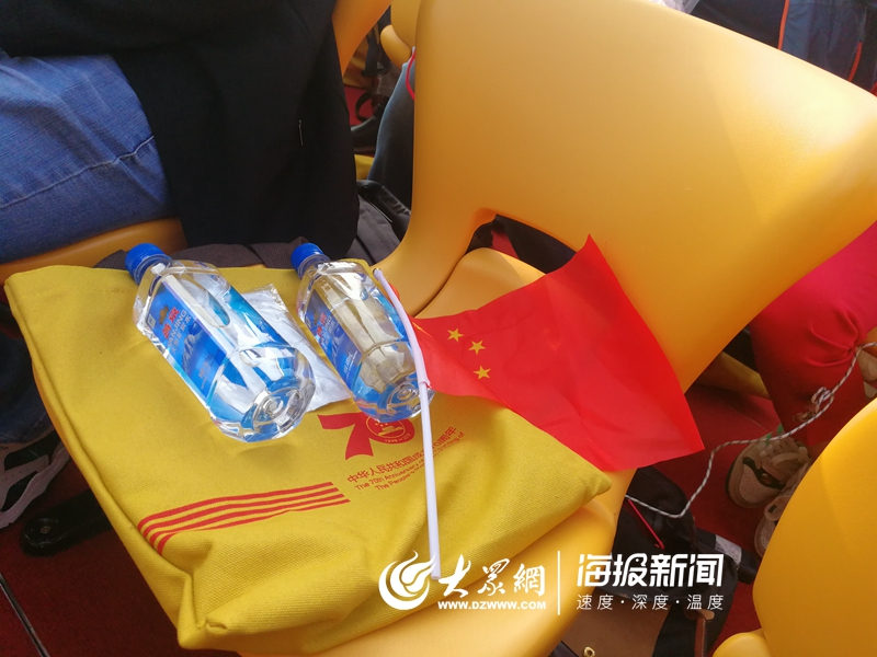 大眾網(wǎng)·海報(bào)新聞北京10月1日訊(特派記者 王磊)今天上午,慶祝新中國(guó)成立70周年大會(huì)、閱兵式和群眾游行,將在北京舉行。大眾網(wǎng)?海報(bào)新聞?dòng)浾咴谟^禮臺(tái)采訪發(fā)現(xiàn),天安門(mén)廣場(chǎng)臨時(shí)觀禮臺(tái)的27000個(gè)座位,在每個(gè)觀禮臺(tái)上面都有一個(gè)觀禮包,里面有一面小型五星紅旗、兩瓶純凈水和一包濕巾。