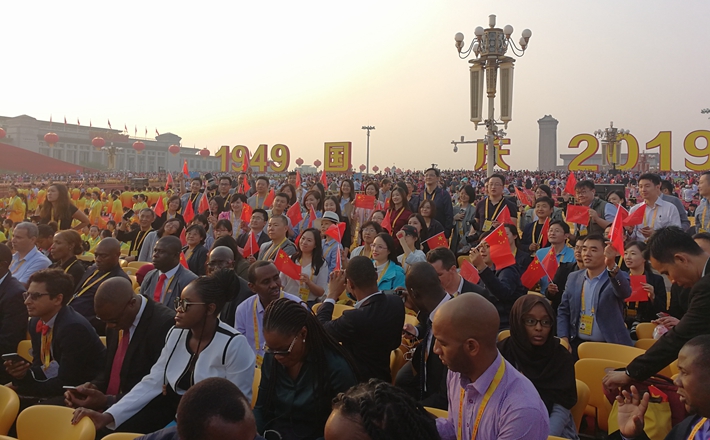 今天,我們隆重集會(huì),慶祝中華人民共和國(guó)成立70周年。此時(shí)此刻,全國(guó)各族人民、海內(nèi)外中華兒女,都懷著無(wú)比喜悅的心情,都為我們偉大的祖國(guó)感到自豪,都為我們偉大的祖國(guó)衷心祝福。