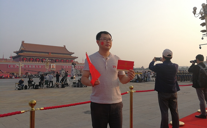 大眾網(wǎng)·海報(bào)新聞北京10月1日訊(特派記者 王磊)今天上午,慶祝新中國(guó)成立70周年大會(huì)、閱兵式和群眾游行,將在北京舉行。在天安門(mén)廣場(chǎng)的觀禮臺(tái)前,前來(lái)觀禮的觀眾們紛紛與國(guó)旗合影。