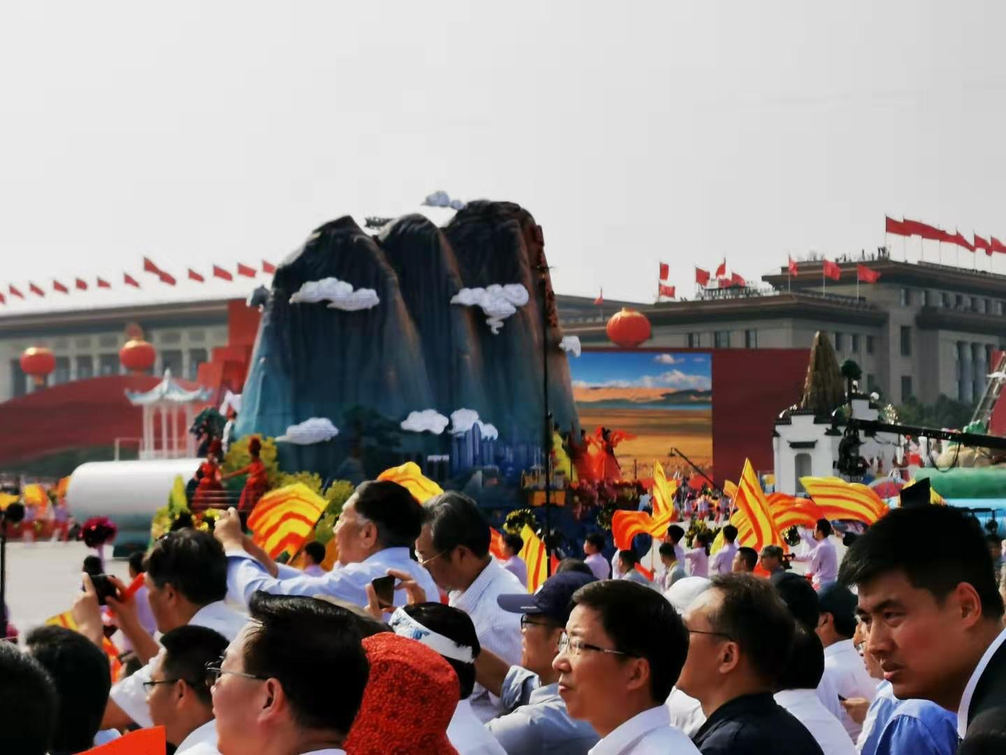 山東“國(guó)泰民安”彩車亮相國(guó)慶群眾游行活動(dòng) (3)(海報(bào)新聞特約記者郭建政 攝)