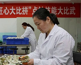 兩個多月后張雪娜找到了竅門,手速越來越快。據(jù)統(tǒng)計,從業(yè)這些年,她已累計清點零鈔3000萬元。 [詳細]