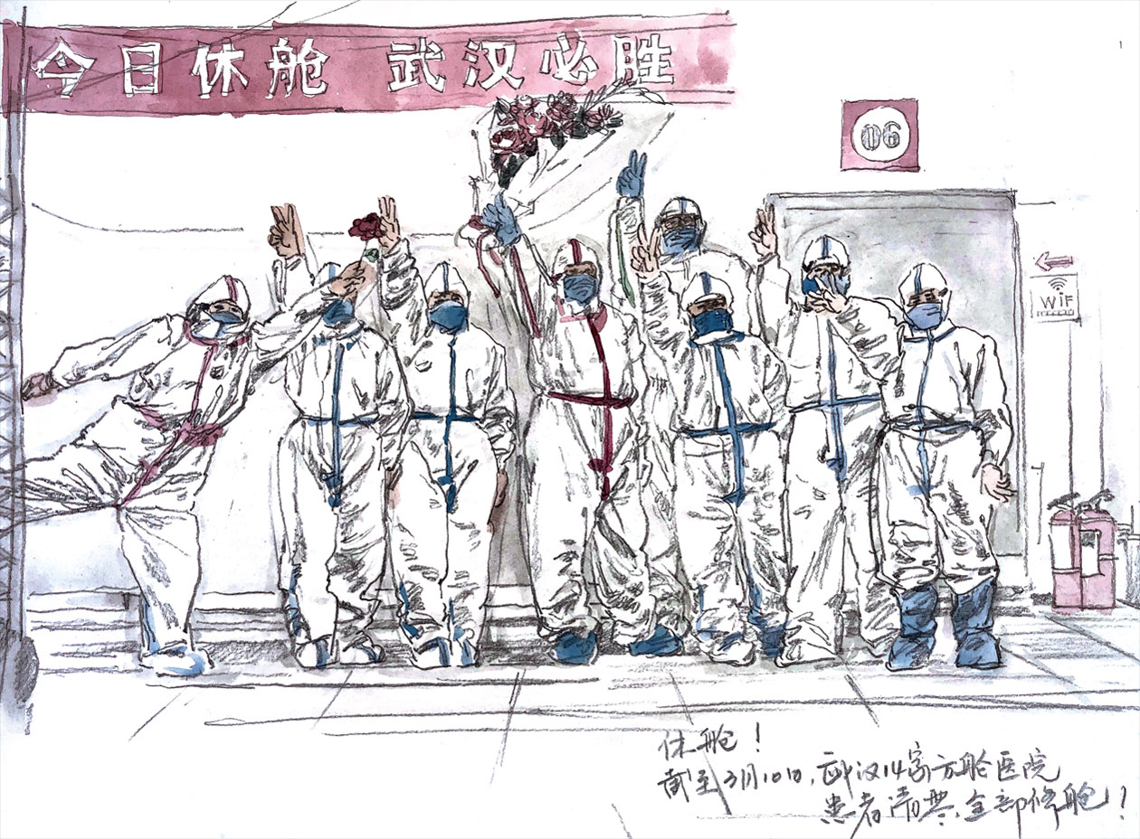 2020年3月18日上午,黃岡大別山區(qū)域醫(yī)療中心。站在患者出院通道處,看著醫(yī)院最后一名患者康復出院,山東首批援助湖北醫(yī)療隊員蘇曉燕和王云云緊繃了近倆月的神經(jīng)稍稍緩解。又一個春和景明之日,無意間掃到路邊枝頭的那些新綠,二人對視一眼,回鄉(xiāng)之日即將到來。