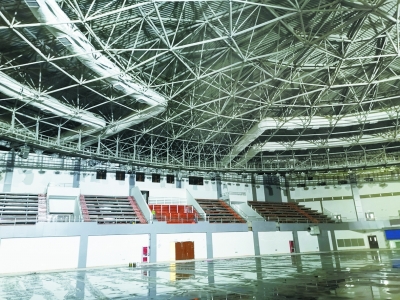 該訓練基地共有8塊標準大小的真冰場,每塊面積約1800平方米。其中,兩塊冰球冰場位于西區(qū)半圓形場館內,觀眾看臺可容納2000人;東區(qū)場館首層設有兩塊冰場,將建成8條冰壺賽道,三層的4塊冰場分別為短道速滑冰場和花滑冰場。