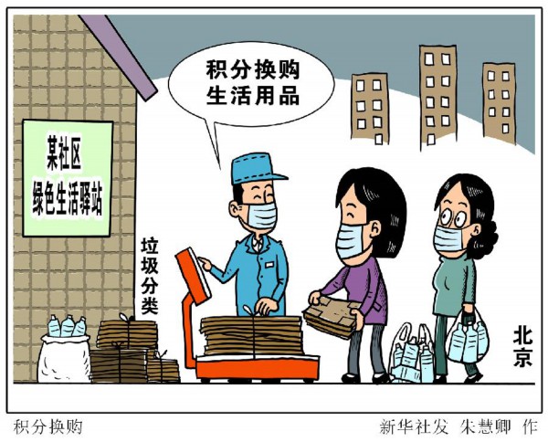 新華社北京5月3日電 題:積分換購生活用品 “兩桶一袋”征求民意——北京部分社區(qū)垃圾分類見聞