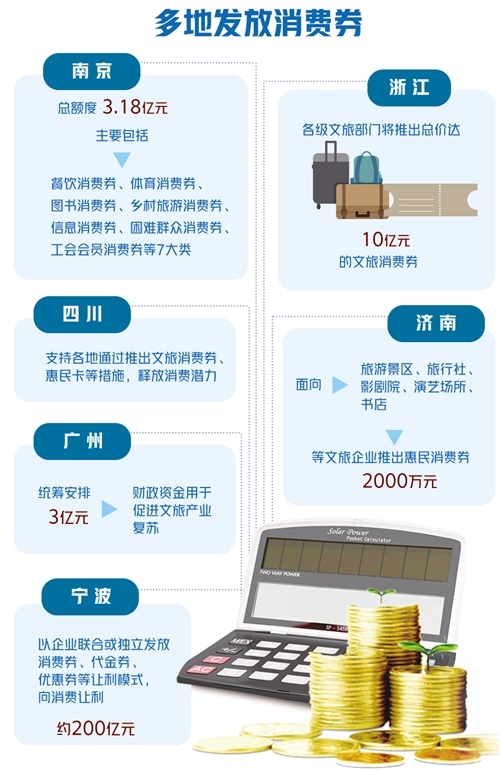為了有效應對疫情對消費的影響,各地區各部門相繼出臺了擴大消費的政策措施,發放消費券就是其中一項重大舉措。在南京,預計將發放總額3.18億元的消費券;在濟南,推出2000萬元文旅消費券;在江西,發放1000萬元旅游電子消費券;在寧波,也將推出大額消費券……