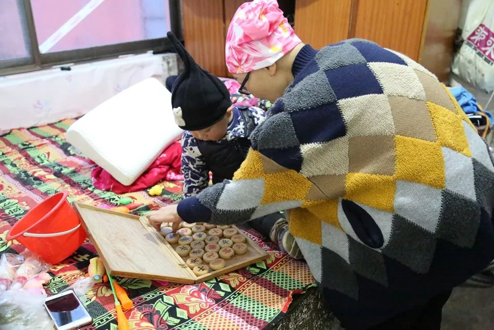 媽媽和姥姥在陪剛睡醒的小康康