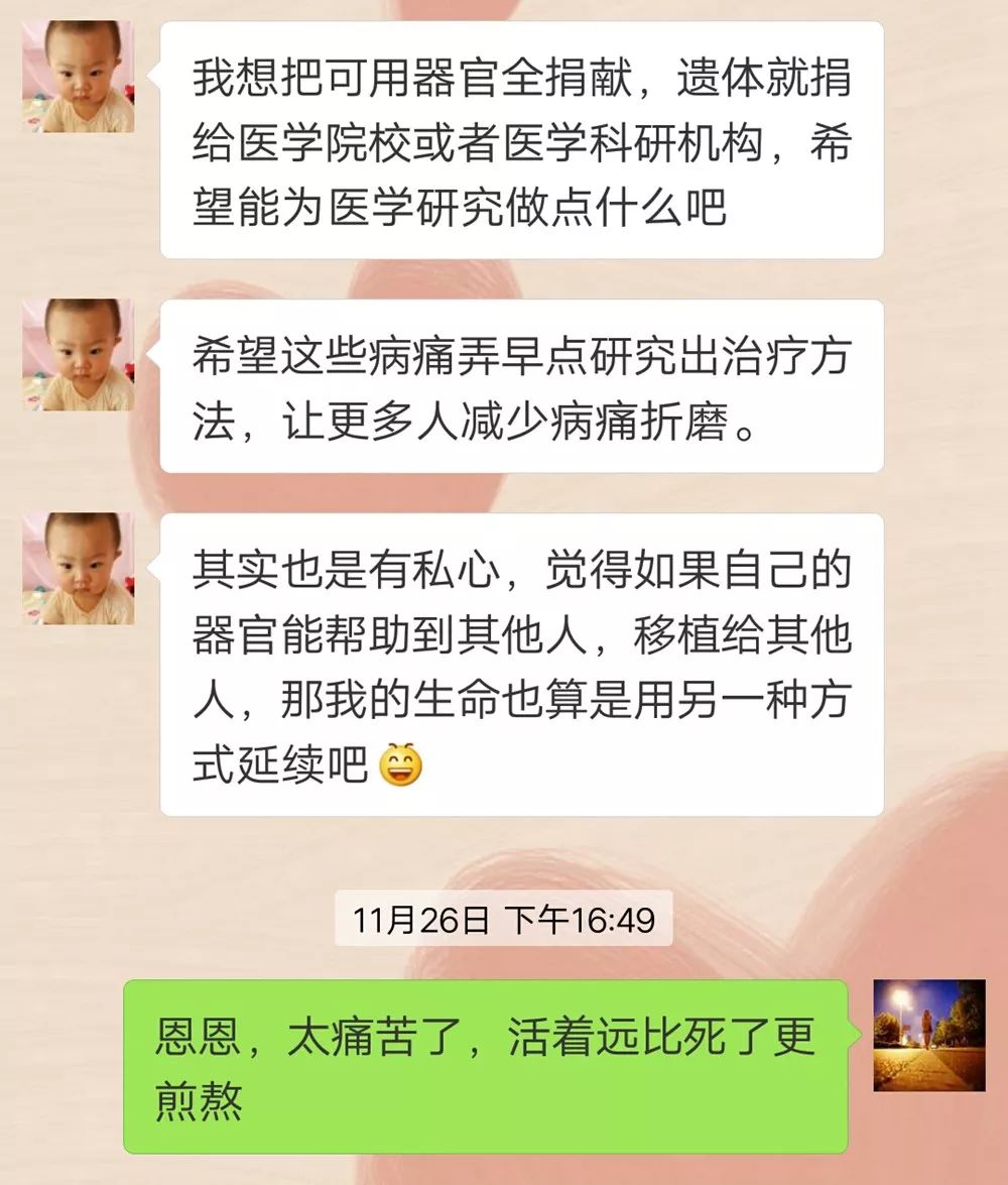 抗癌173天失敗,癌細胞擴散,在生命的最后一程她萬般不舍,最后的心愿是“把我的遺體捐出去做醫學研究,讓更多人減少病痛折磨,不要再重演我的悲劇。”