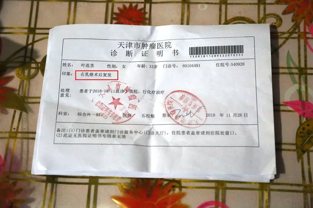 但是歲月靜好只是一場泡影,今年8月,乳腺癌再次復發,前3期化療效果微乎其微。醫生悄悄告訴葉連莖的母親黃彩艷,讓她做好心理準備,癌細胞已經擴散到肋骨、胸隔膜、淋巴······如果4期化療失敗,那國內真的無藥可救了。