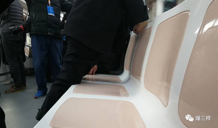 車體內部,淺色的搭配給人清新美觀的感覺,側頂板、燈帶,空調隔柵一體化設計,貫穿整個客室。座椅也是專為山東人設計,國內同行業都是430毫米,而濟南軌道交通一號線則加寬到450毫米,坐起來比較寬敞一些。