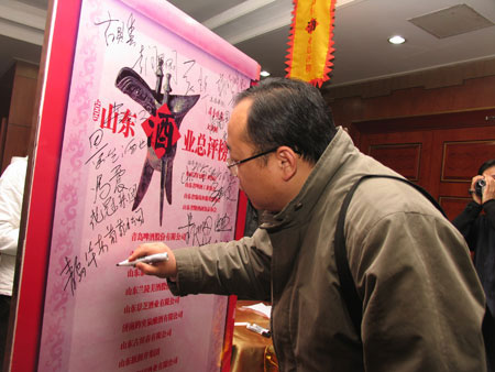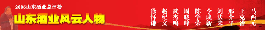 “山東酒業(yè)功勛人物”——金志國(guó) “山東酒業(yè)功勛人物”——張正欣 “山東酒業(yè)風(fēng)云人物”(按姓氏筆劃排列) ·山東泰山生力源集團(tuán)董事長(zhǎng)——馬西元 ·山東景芝酒業(yè)有限公司董事長(zhǎng)——王克治 ·濟(jì)南趵突泉釀酒有限公司董事長(zhǎng)——邢介平 ·山東花冠酒業(yè)集團(tuán)董事長(zhǎng)——?jiǎng)⒎▉?/a> ·山東百脈泉酒業(yè)有限公司董事長(zhǎng)——李成新 ·山東蘭陵企業(yè)集團(tuán)董事長(zhǎng)——陳學(xué)榮 ·山東古貝春有限公司董事長(zhǎng)——周曉峰 ·山東禹王亭集團(tuán)董事長(zhǎng)——武杰鳴 ·山東扳倒井集團(tuán)董事長(zhǎng)——趙紀(jì)文 ·山東景陽岡酒業(yè)有限公司董事長(zhǎng)——徐懷謙 “山東酒業(yè)創(chuàng)新人物”——董金河 “山東酒業(yè)營(yíng)銷人物”(按姓氏筆劃排列) ·山東景陽岡酒業(yè)有限公司副總經(jīng)理——?jiǎng)⑦M(jìn)文 ·山東禹王亭集團(tuán)副總經(jīng)理——?jiǎng)⑦B志 ·青島啤酒青島營(yíng)銷分公司副總經(jīng)理——?jiǎng)⒔痂I ·山東金彩山酒業(yè)有限公司總經(jīng)理——孟憲波 ·山東景芝酒廠銷售總公司總經(jīng)理——張偉 ·山東古貝春有限公司副總經(jīng)理——張恒路 ·山東泰山生力源集團(tuán)總經(jīng)理——張銘新 ·山東扳倒井集團(tuán)副總經(jīng)理——張輝 ·山東蘭陵企業(yè)集團(tuán)總經(jīng)理——韓玉亮 ·山東寶真酒業(yè)有限公司總經(jīng)理——潘智群