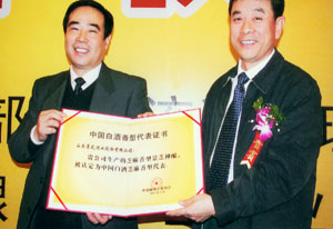 2006年,對景芝酒業來說,是非同尋常之年。這一年,景芝白乾被確認為首批“中華老字號”,景芝酒的釀造技藝被省政府公布為省級非物質文化遺產,在國家質檢總局組織的質量抽查中,榮登“紅榜”第一名; 景陽春榮獲中國馳名商標;芝麻香景芝神釀被商務部酒類流通管理辦公室和中國釀酒協會確立為芝麻香白酒代表,榮獲“山東十大影響力品牌”,譽滿齊魯。這些榮譽標志著景芝酒業對白酒業發展作出的貢獻,得到業界和社會廣泛的肯定和認同。同時,也表明作為景芝酒業當家人的王克治功不可沒,這位風度儒雅,思維敏銳的董事長以其獨到的治企理念,引領景酒這艘大船劈波斬浪,奮勇前進。